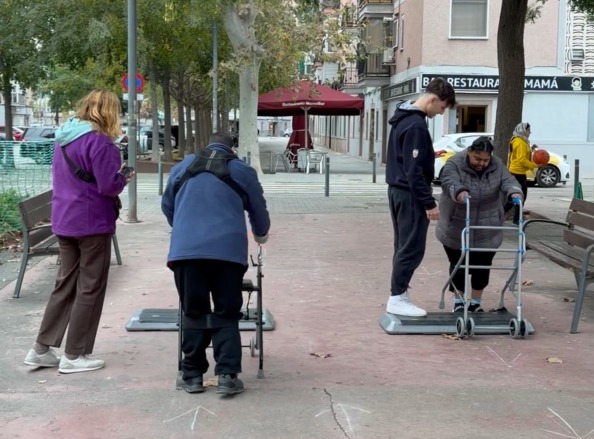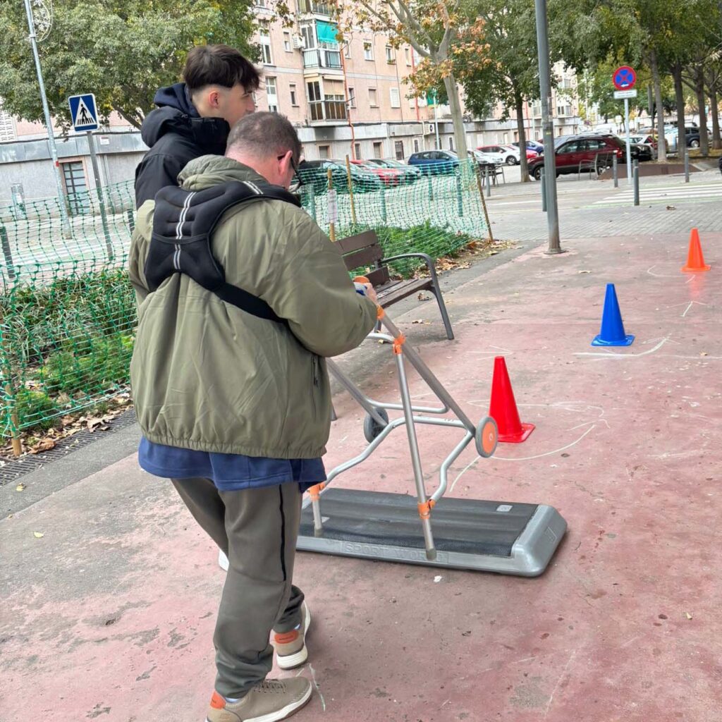 Des del CEM Besòs vam dinamitzar una activitat que simulava les dificultats de mobilitat: els participants havien de completar un petit recorregut utilitzant un caminador i portant al damunt una armilla amb pes, pesos als turmells i braços i gomes que limitaven el moviment de les cames.